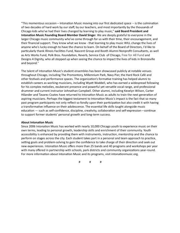 We are delighted to be working with the Chicago-based Carol Fox & Associates! They are our Public Relations and Social Media Consultant as we move into our new space and continue into our 20th year as an organization. Learn more about their firm here and see the press release below.
